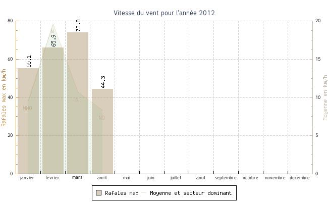 | avril | 3.8 °C | 8.8 °C | 29.9 °C | 19.5 °C | 14.4 °C | 8.3 km/h | 44.3 km/h | NO |